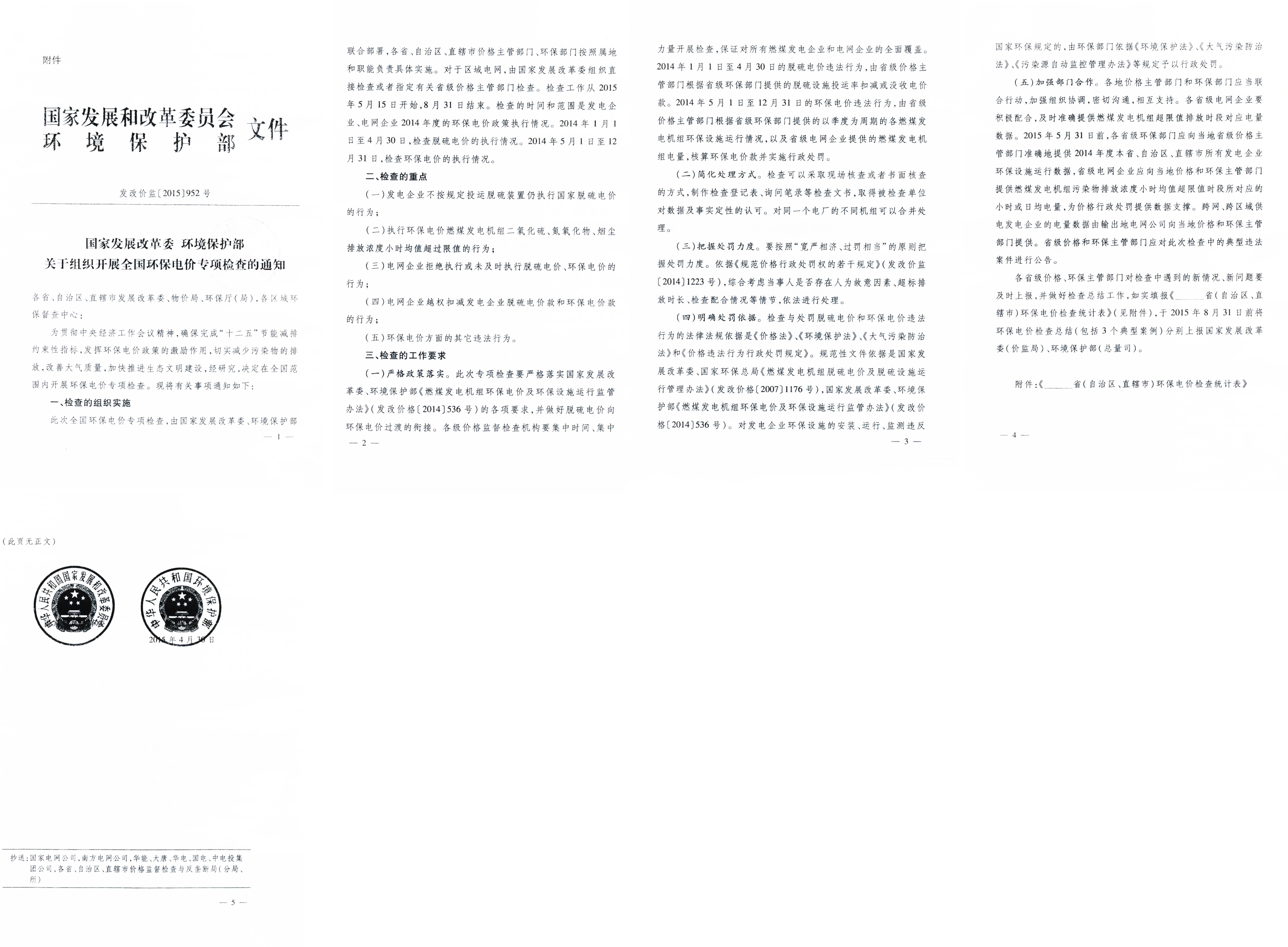 附件:1.《国家发展改革委环境保护部关于组织开展全国环保电价专项检查的通知》(发改价监〔2015〕952号)