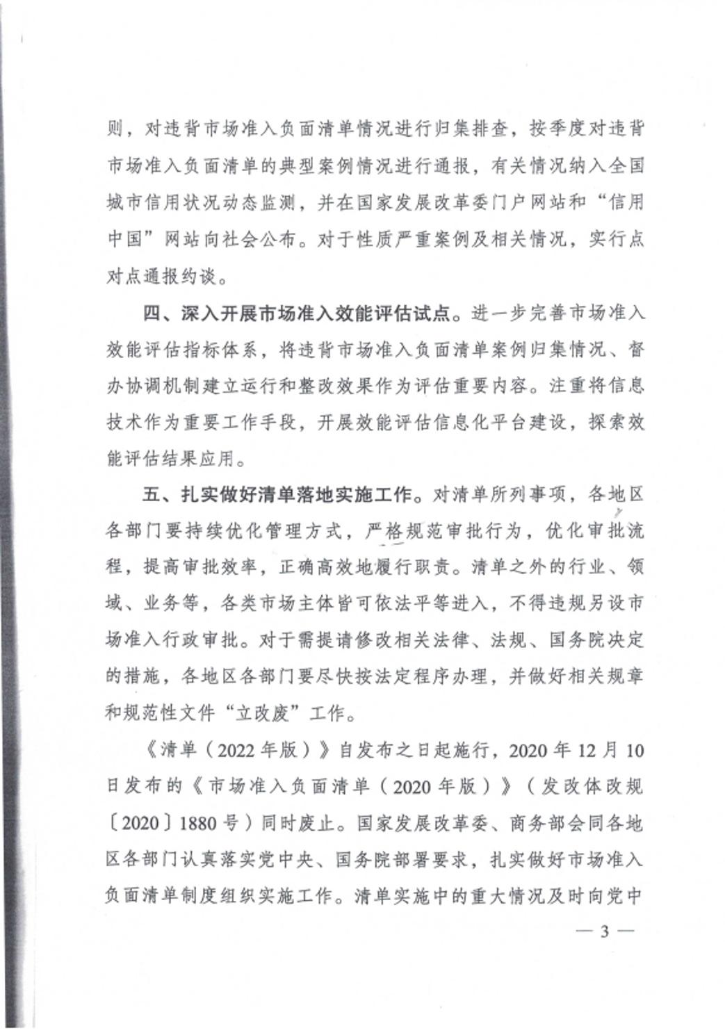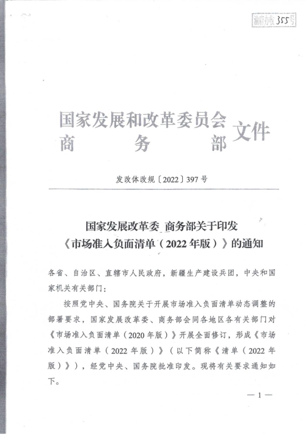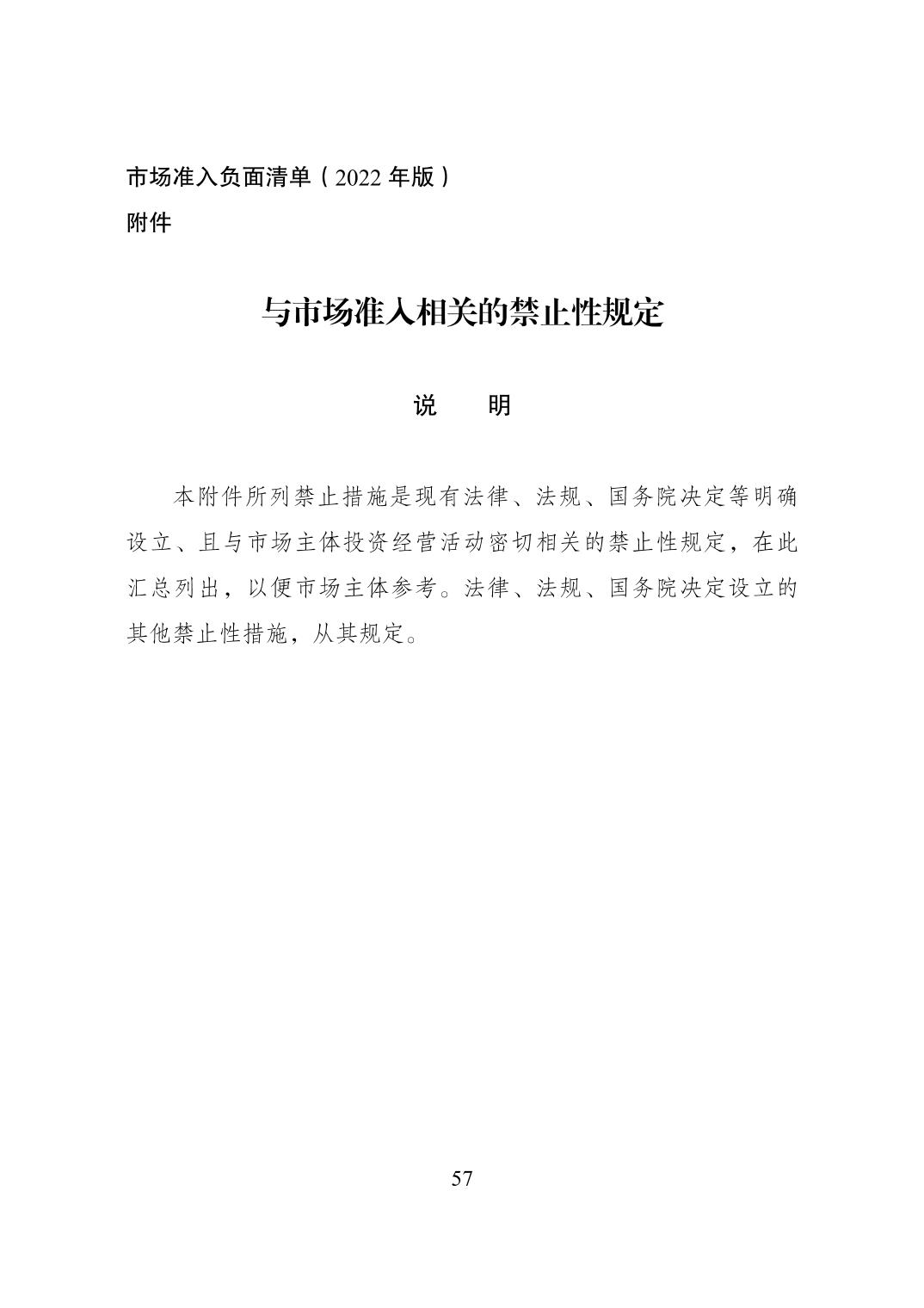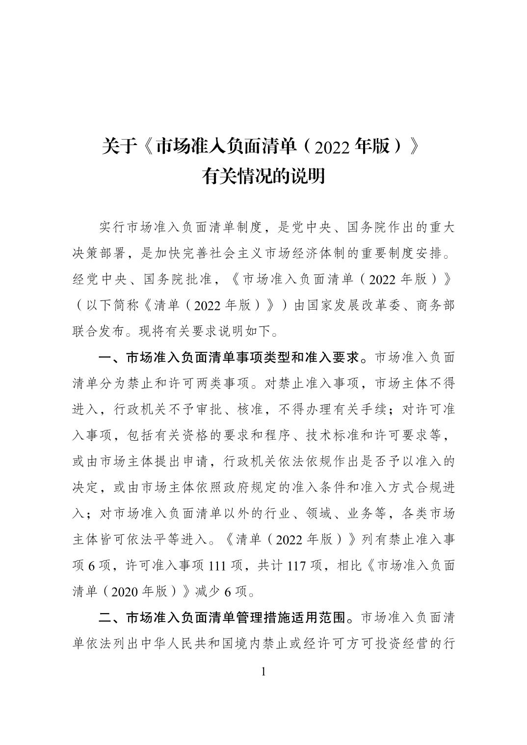 国家发展改革委商务部印发《市场准入负面清单(2022年版)》