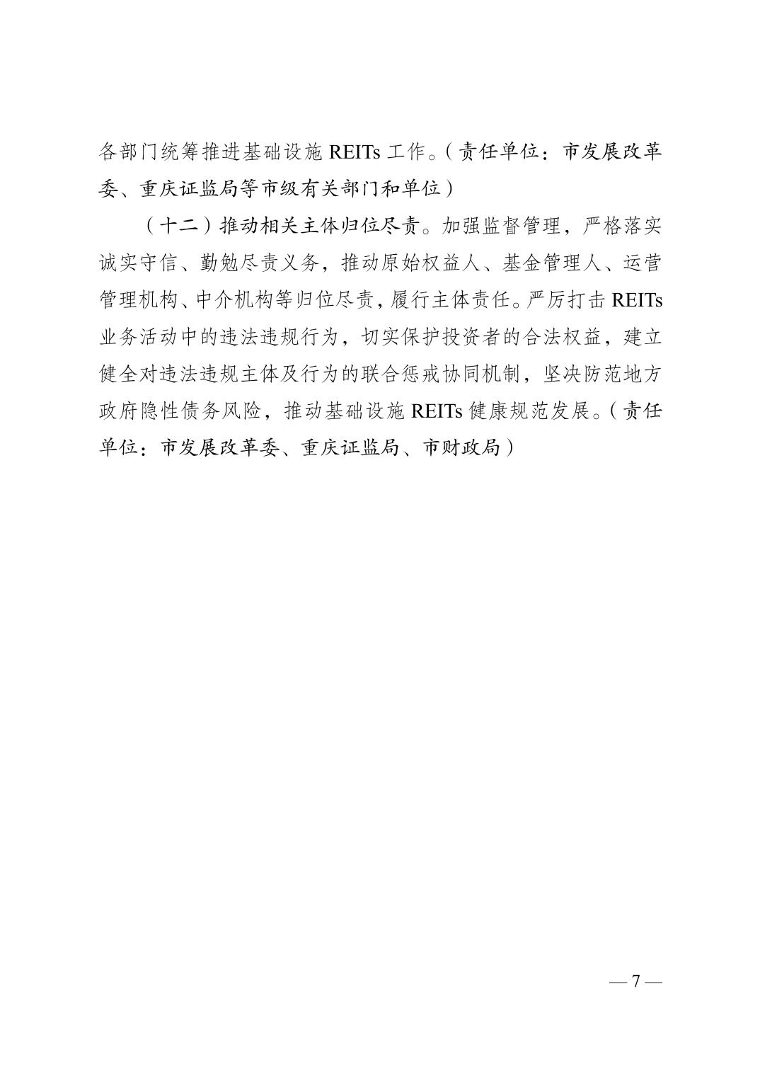 关于印发《重庆市推进基础设施不动产投资信托基金(REITs)产业发展若干措施》的通知