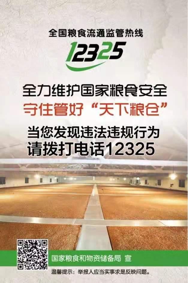 12325是国家粮食和物资储备局受理全国粮食流通监管的热线电话。为发挥人民群众监督作用,督促粮食生产经营者严格遵守《粮食流通条例》及新型冠状病毒的肺炎疫情防控相关要求,进一步做好我市粮油市场保供稳价工作,维护市场粮食流通秩序,坚决打赢疫情防控阻击战,现将12325粮食流通监管热线举报受理范围、途径等内容公告如下: